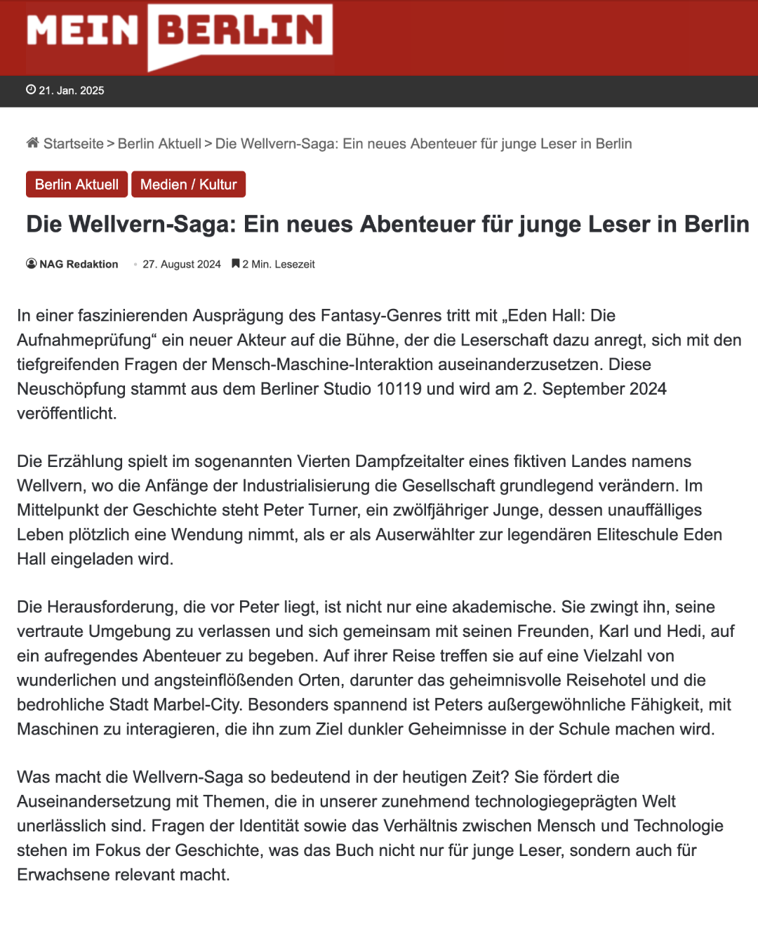Die Wellvern-Saga: Ein neues Abenteuer für junge Leser in Berlin